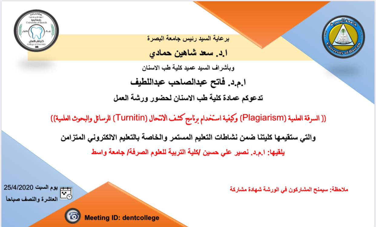 كلية طب الاسنان في جامعة البصرة تعلن عن اقامتها ورشه علمية