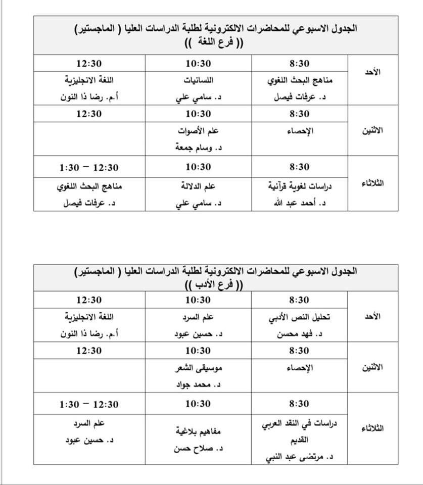 كلية التربية قرنة في جامعة البصرة تباشر بتقديم المحاضرات لطلبة الدراسات العليا من خلال وسائل التعليم الالكتروني