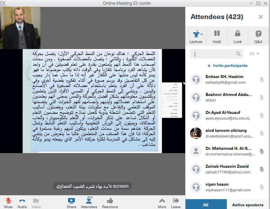 جامعة البصرة تنظم ورشة الكترونية عن انماط التعلم ودورها في العملية التعليمية